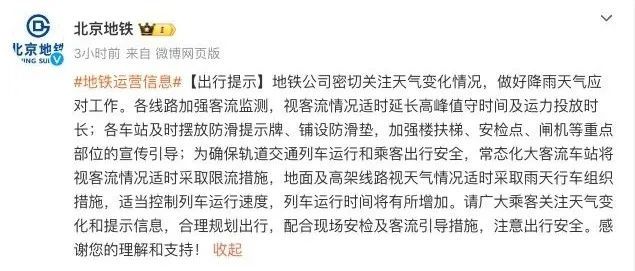 @北京地铁 今早发布提示